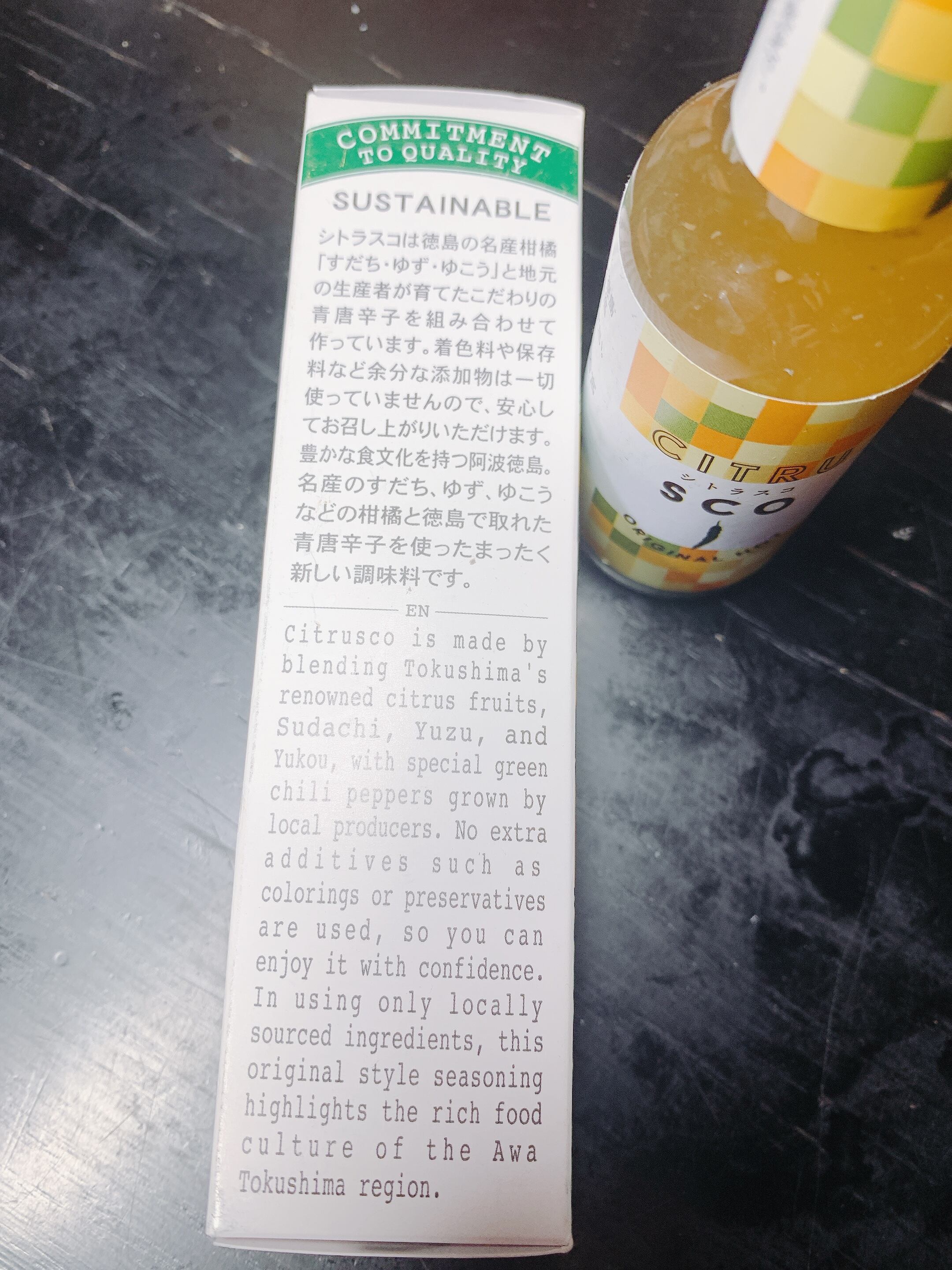 徳島県産の青唐辛子(みまから)と香酸柑橘の三姉妹である香り柚、酸味酢橘、味柚香をバランス良く合わせた万能調味料です。どんな料理にも合うので和食、中華、洋食、イタリアンなど色々と使っていただくと新しい感動が得られます。和食だとお鍋とか、洋食だとステーキとか、イタリアンだとピザにタバスコがわりにとか、活躍できるシーンは沢山あります。是非試してみたください。